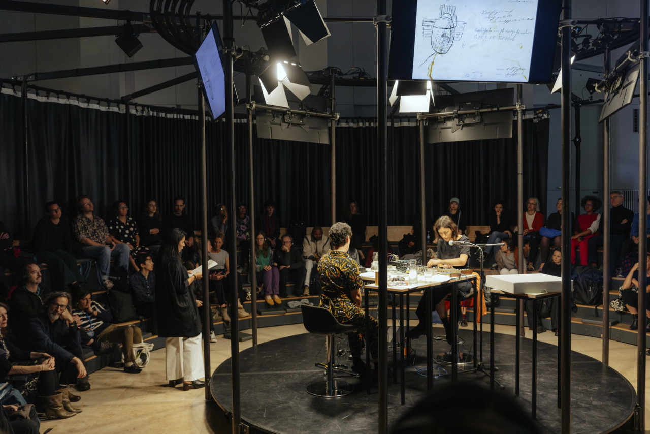 In collaboration with Colombian writer Eliana Hernández-Pachón and flutist Marina Cyrino, we created a live performance where original music and improvisation accompanied her reading. Suspended Waters is a poetic essay that connects four objects made of plant fibres from the Humboldt Forum collections: a death raft woven from reeds, a Muisca gold raft, Amazonian palm flutes, and a museum record sheet. Through these objects, Hernández-Pachón evokes worlds of ritual, sanctity, abundance, and disruption. In this performance, music and voice intertwined to expand the lyrical flow of the text, amplifying its cycles of interrelation, memory, and healing, and giving sound to the more-than-human beings inhabiting her narrative